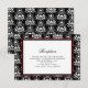 Cartão de Recepção com Acento Vermelho em Damask Preto e Branco