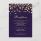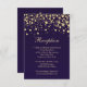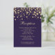 Cartão de Recepção de Casamento com confetes de efeito dourado em fundo violeta