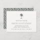 O cartão de recinto de recepção de casamento island chic apresenta letras elegantes em carvão cinza com uma ilustração de palmeira em estilo vintage. Personalize com o horário da recepção de casamento, local e quaisquer informações adicionais usando os campos fornecidos. Os cartões são impressos no verso com um padrão entrelaçado de palha em verde caçador escurecido. Projetado para combinar com a nossa coleção de convites de casamento Havana Palm para casamentos de verão, praia, ilha tropical e destino.