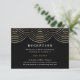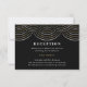 Este Cartão de Recepção de Arte Deco foi projetado para coordenar com a Coleção de Casamentos de Luzes Deco String em preto e ouro, este cartão de recepção de casamento apresenta um design de 1920 de cordas, inspirado nos vestidos mais brilhantes da idade do jazz. Informe o seu convidado sobre seus detalhes de recepção com estilo e itens correspondentes. Você pode alterar a cor de fundo, os tamanhos de fonte e todos os elementos nela contidos.