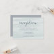 Nosso cartão verde e cinza de cerimônia de recepção Chiffon apresenta um fundo de lavagem a água em tons de tonalidades de verde pastel, acentuado com caligrafia cômica e seriffão em ardósias poeirentas. Personalize com os detalhes da sua recepção de casamento, incluindo horário, local e quaisquer informações adicionais como transporte ou estacionamento. Projetado para coordenar com nossa suíte de convite de casamento Chiffon no Mar.