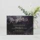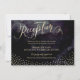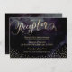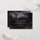 Design de caligrafia com letra à mão em dourado glamoroso e confetes de pontos dourados em fundo de aquarela preta escura, efeito de brilho metálico dourado falso cintilante, moderno, chique, limpo e elegante, perfeito para casamento vintage ou casamento de inverno à noite. Personalize seu próprio cartão de recepção para o conjunto de convite de casamento.