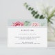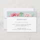 Projetado para coordenar com o nosso casamento Antiquado Peony e os convites para eventos em Blush and Sage, este cartão de recepção de safra moderno apresenta flores cor-de-água cor-de-rosa pincelada atrás de um painel frontal em branco e azul-da-noite, sobre um fundo verde pastel mudo. Adicione seus detalhes de recepção, incluindo horário, local e quaisquer informações adicionais como estacionamento de manobrista ou serviço de vaivém.