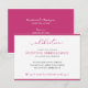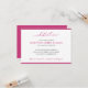 Cartão de Recepção de Caligrafia Cherish (Rosa Quente e Preto): Este cartão de recepção apresenta uma tipografia solta e fluida para transmitir os detalhes da sua festa de recepção. O verso tem um espaço para uma breve ordem de eventos da recepção (Coquetéis, Jantar Servido e Dança). Você pode alterar todo o texto, exceto a palavra "Celebração" no topo. O design é definido em rosa quente, mas você pode alterá-lo para qualquer cor que desejar, simplesmente mudando a cor do fundo.