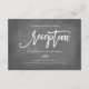 Este cartão de recepção elegante apresenta fontes elegantes e um fundo de quadro negro.