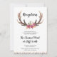Cartão de cerimônia de núpcias com galhadas de veados e flores. Perfeito para casamentos de celeiro de verão e festas boêmicas.