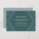 Projetado para combinar com nossa coleção de casamento Empire em Jasper, este cartão de recepção de casamento art déco chic e dramático apresenta detalhes geométricos modernos em tom de joia rico em verde escuro. Personalize com os detalhes da sua recepção, horário e endereço em branco crocante.