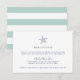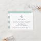 Projetado para combinar com nossas coleções de convites de casamento Náutica Mix, este cartão de recepção de casamento com estilo costeiro em menta e azul naval apresenta uma pequena ilustração de estrela-do-mar em estilo vintage no topo com letras elegantes em azul naval e um fundo listrado horizontalmente em verde e branco. Adicione os detalhes da recepção, como horário, local e endereço, usando os campos fornecidos.
