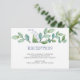 Projetado para coordenar com o VG Invites Greenery Suite, este cartão de recepção de encerramento fresco botânico apresenta um spray de folhagem exuberante sobre a redação desejada. O lado verso apresenta um design de faixa moderno. Para ver mais dos designs da VG Invites visite www.zazzle.com/vginvites