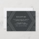 Projetado para coordenar com a nossa coleção de casamento Empire em Carvões, este cartão de recepção chic e dramático de deco de arte apresenta detalhes geométricos modernos em azul-preto de carvão luxo. Personalize com seus detalhes de recepção, cronograma e endereço em branco nítido.