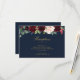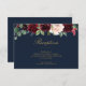 Um cartão de informações de recepção de casamento com um design floral de cor d'água de marinho burgundy e texto personalizado.