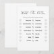 Elevem a sua recepção de casamento com o nosso Cartão Moderno Minimalista de Jogos Caseiros - a adição perfeita a uma elegante celebração contemporânea. Projetada com linhas elegantes e uma estética limpa e minimalista, esta placa de jogo se mistura sem esforço com qualquer decoração moderna, fazer-a uma maneira na moda, mas divertida de entreter convidados. A carta oferece jogos engajados como o Wedding Bingo, Find the Guest, e Words of Wisdom, encorajando interação e riso entre amigos e família. Impresso em um estoque de cartão de qualidade superior com uma escolha de tons clássicos monocromáticos ou neutros, este cartão de jogo adiciona um toque refinado ao seu evento, criando momentos inesquecíveis que seus convidados apreciarão.