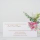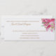Este convite para o casamento é mostrado em um fundo do Shimmer da Pérola Branca com um layout moderno. Impressão de arte das flores rosa. Texto em uma cor de Ouro. Personalize este item, retirando o texto do exemplo e colocando suas informações nele. Imagem de ações.