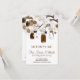 Cartão de recepção com jarras de pedreiro, flores, pássaros apaixonados e corda de coração - caprichoso e rústico, perfeito para celebrações de outono ou rustic country.