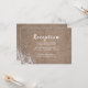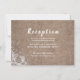 Elegantes cartões de recepção de casamento em burlap rústico com renda vintage branca e brilho prateado. ótimo para casamento rústico, casamento em celeiro, casamento country e casamento vintage.