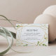 Projetado para combinar com nossa coleção de casamento Terrarium, este cartão de recinto de recepção elegante apresenta uma borda geométrica dourada acentuada com ramalhetes de folhas e folhagens de aquarela verde. Personalize com os detalhes da sua recepção, horário, local e endereço.