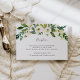 Projetado para combinar com nossa coleção de casamento Alabastro, este cartão de recepção com detalhes em verde fresco e branco apresenta um spray de folhagem em aquarela e flores brancas destacando os detalhes da recepção do casamento, local e horário.
