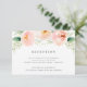 Projetado para combinar com nossa coleção de casamento Airy Floral, este cartão de recepção floral exuberante apresenta um spray de flores e folhas em aquarela pastel em tons de pêssego e verde menta, com os detalhes da recepção, horário e endereço.