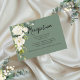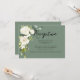 Este é um belo e elegante cartão de recepção de casamento floral. Bela cascata de flores brancas de aquarela cercadas por galhos de verduras adornam o lado esquerdo desta carta. Absolutamente lindo. Perfeito para uma queda e casamento no inverno. Essa cor e design podem ser facilmente misturados com laranjas, burgundy e outras cores profundas para completar seu tema.