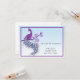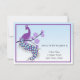 Cartão de recepção elegante com pavão roxo e azul sentado em um galho com flores roxas claras em um fundo azul com borda roxa. Personalizável para qualquer ocasião. Peças correspondentes disponíveis. Alguns gráficos ©Riefka Designs
