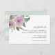 Cartão de recepção de casamento floral elegante em tons elegantes de lavanda roxa pastel e verde salvia apresenta um buquê floral de aquarela no canto superior esquerdo, com os detalhes da sua recepção em letras clássicas preto fosco. Personalize com os detalhes da recepção do seu casamento, incluindo horário, local, endereço e qualquer informação adicional, como transporte ou estacionamento.