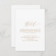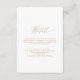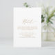 Este delicado cartão de hotel de caligrafia em ouro é perfeito para um casamento moderno. A design romântica minimalista apresenta uma magnífica e elegante tipografia amarela ouro champanhe num fundo branco com um aspecto simples e limpo.