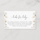 Quadro de flores silvestres, cartão de pedido de livro de chás de fraldas. Cartões, tipografia de cinza escura e cobertura de cor rosa.