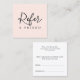 Um simples cartão de referência branco-rosa, totalmente personalizável e quadrado, para profissionais ligados à beleza. Design simples, ferramenta perfeita para marketing.
