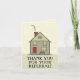 Um cartão de agradecimento de referência profissional com uma encantadora casa ilustrada com uma porta vermelha, chaminé vermelha e varanda frontal aconchegante. A mensagem em negrito “OBRIGADO PELA SUA REFERÊNCIA!” torna-o ideal para corretores de imóveis, corretores de hipotecas ou prestadores de serviços que desejam expressar gratidão a clientes, colegas ou parceiros. Em branco no interior para sua nota manuscrita. Uma forma calorosa e amigável de se manter conectado.