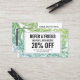 Coordena-se com o Modelo de cartão de negócios de Palmas Tropicais Verde/Glitter Aqua até 1201AM. Silhuetas de palmeiras criam um pano de fundo tropical nesse modelo de cartão de referência de salão moderno e sofisticado. Seu nome ou nome de empresa está estilizado em uma simples caixa preta na parte traseira para uma estética limpa e mínima que contrasta bem com o fundo falso brilhante. Atualize o texto de promoção com sua própria recompensa de referência desejada. © 1201AM CREATIVE