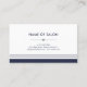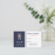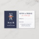 Um cartão de referência para cabelos florais em azul marinho, branco e coral, com um par de tesouras brancas decoradas com flores desenhadas à mão em laranja, rosa e vermelho.