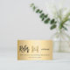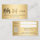 Um fundo de aparência dourada, texto preto. Na frente: Adicione seu logotipo comercial, desconto. data válida. Voltar: Personalize e adicione seu nome de empresa, número de telefone, email, endereço de site, código qr ao site ou conta de mídia social.