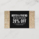 Coordena-se com o Dourado Modelo de cartão de negócios Glitter and Glamor Beauty até 1201AM. Uma imagem de fundo ouro brilhante quente fornece um pano de fundo glamouroso para este modelo de placa de referência personalizável. Seu nome ou nome comercial é elegantemente estilizado em uma placa de nome cortada em ouro falso para um logotipo moderno na parte de trás. Personalize o texto para sua própria promoção ou oferta. Excelente para salões, cabeleireiros, maquiadores, designers de unhas, boutiques e muito mais. © 1201AM CREATIVE