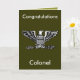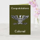 Este cartão de saudação é decorado com o dispositivo de colarinho do Coronel do Exército e as palavras "Parabéns Coronel". Dentro as palavras "No seu Aposentadoria do Maior Exército do Mundo" aparecem. Uma ideia de presente de excelente.