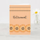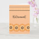 Cartão de aposentadoria com fundo cor de laranja de pêssego, laranja bonito, ouro e flores pretas, e uma borda de designer. Obrigados à hungryjpeg para alguns dos elementos comprados no design.