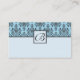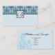 Dê esses cartões de registro de presentes para sua família e amigos para que eles saibam onde você está registrado. Estes cartões de registro de casamento apresentam uma cor damasco rico preta sobre um fundo azul claro com um primeiro monograma personalizável. Essas placas se coordenam com todos os outros produtos finos em nossa Coleção de Casamentos tema damasco Clássica - Azul.