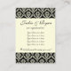 Cartão de aviso de Lista de Presentes para planejador de casamento / evento com damasco de lustre bonito.