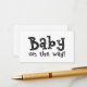 Usando uma fonte divertida e engraçada, criei uma camada gráfica de tipografia em preto que dizia "Bebê no caminho!" e a coloquei sobre um fundo branco editável que pode ser mudado para qualquer cor que você preferir. Do outro lado está um campo modelo de espaço para o nome da mãe e detalhes sobre o repositório do registro da oferta. Você também pode alterar a fonte usada para renderizar seus detalhes pessoais. Por favor, avise-me se precisar de ajuda para personalizar ou se tiver pedidos especiais. // Concebida por Melody Watson para Paper Muserie.