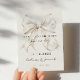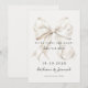 Convite de reserva de data de casamento "Estamos nos casando" com um design de laço branco elegante e fonte de letra manuscrita.