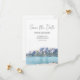 Este cartão de reserva de data é projetado em torno de uma foto tirada do Lago Minnewanka, um lago cênico dentro do Parque Nacional de Banff, a apenas 5 quilômetros da cidade de Banff.