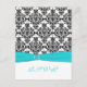 Cartão de Resposta Aqua, Branco, Preto Damask II