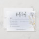 Este design de carta de resposta do casamento apresenta um buquê simples e flexível de flores silvestres botânicas em um fundo branco e oval azul de borboleta azul de borboleta macia. É delicado e elegante. Criada pela "Simply Farmhouse Press", faz parte da suíte de cartas Boho Wildflower Modern Blue Wedding.