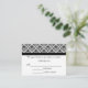 Cartão de resposta formal branco e preto para Damask Elegante. O texto diz: "Solicitamos uma resposta sobre ou antes". Texto personalizável adicional para a data de resposta e irá/não participará dos campos. Cartão ideal a ser incluído com convite de casamento. Comprar em massa e salvação!