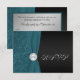 Este dramático cartão de RSVP monogramado em damasco floral em azul-teal e preto tem uma fita com a inscrição "PRINTED ON" e medalhão com joias. Ele combina com o convite de casamento mostrado abaixo. As escolhas de texto e papel são totalmente personalizáveis. Se você precisar de itens correspondentes, envie um e-mail para niteowlstudio@gmail.com com sua solicitação.