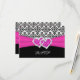 Cartão de Resposta Damasco Preto, Branco e Rosa &