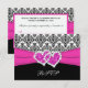 Este cartão de RSVP damasco preto e branco tem uma fita impressa em rosa choque e um broche de corações de diamante unidos com brilho FAUX que combina com o convite de casamento mostrado abaixo. Se você precisar de outros itens correspondentes ou gostaria de ter em outra combinação de cores, envie um e-mail para niteowlstudio@gmail.com com sua solicitação.