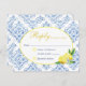 Envie informações adicionais para o seu evento com este lindo cartão de detalhes italianos de limão e azulejo azul. Com um estilo toscano de Positano, este design é perfeito para qualquer evento de primavera ou verão.