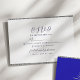 Abrace o epítome da elegância moderna com nosso cartão de RSVP, uma mistura requintada de simplicidade e sofisticação. O cartão branco crocante define o cenário para o charme minimalista, enquanto os acentos em azul real adicionam um toque de atrativo régio. Os convidados podem selecionar suas opções de menu com facilidade, adicionando um toque personalizado à sua resposta. O verso brilha com um glitter prateado chic, elevando o cartão a um reino de glamour sutil. Com suas linhas limpas e design contemporâneo, nosso cartão de RSVP promete ser o complemento perfeito para o seu casamento em branco e azul real, garantindo uma celebração inesquecível de amor e união.