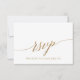 Este cartão de resposta RSVP de site de casamento com caligrafia em ouro é perfeito para um casamento simples. O design neutro apresenta um cartão minimalista decorado com tipografia romântica e caprichosa em fólio de ouro falso. Personalize o cartão de resposta online com seu RSVP por data e endereço do site do casamento. Se seus convidados não precisarem de uma senha para acessar o site, você pode substituir o texto por um método alternativo de RSVP ou uma mensagem curta para seus convidados.