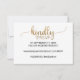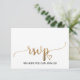 Este simples cartão de resposta RSVP de site de casamento com caligrafia em dourado é perfeito para um casamento sofisticado. O design clássico romântico apresenta tipografia com efeito de folha de ouro e um lindo coração dourado. Personalize o cartão de resposta online com sua data de RSVP e endereço do site de casamento. Se seus convidados não precisarem de uma senha para acessar o site, você pode substituir o texto por uma mensagem curta e doce para seus convidados ou um método alternativo de RSVP.